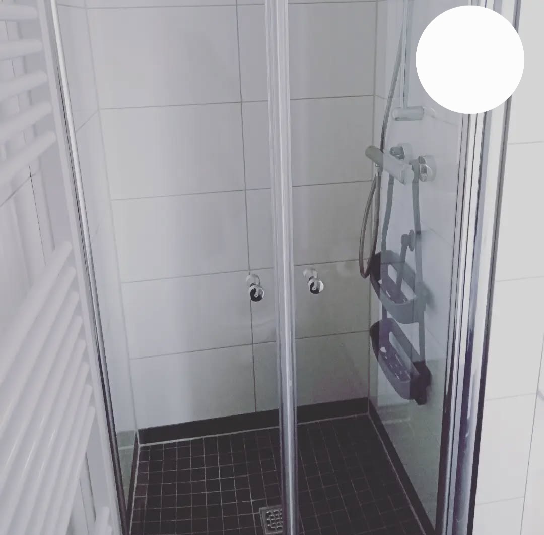 Kurz soll auch das Badezimmer vorgeführt werden. Dort befindet sich eine Toilette, ein Waschbecken (im Unterschrank liegt ein Fön),eine ebenerdige Dusche und eine Badewanne.