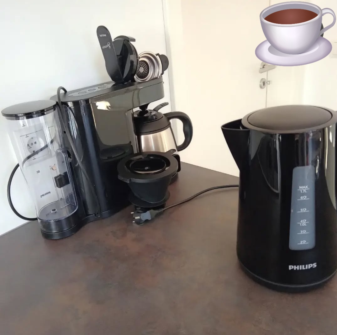 Das Haus enthält in der Küche diverse Gegenstände die den Aufenthalt sehr bequem machen. So sind u. a. ein Kühlschrank, Spülmaschine, Kaffeemaschine, Wasserkocher, Backofen mit Mikrowelle und weitere Annehmlichkeiten enthalten.